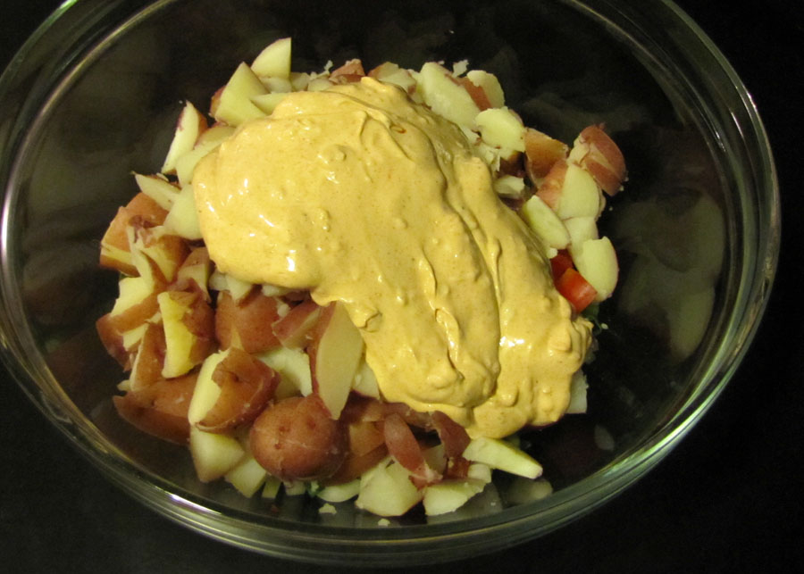 I must be getting old. When I was younger, I couldn't tolerate a potato salad that contained "weird crunchy" things in it. Today, I found that those weird crunchies add an interesting dynamic to the texture, nevermind what happens with the flavors.